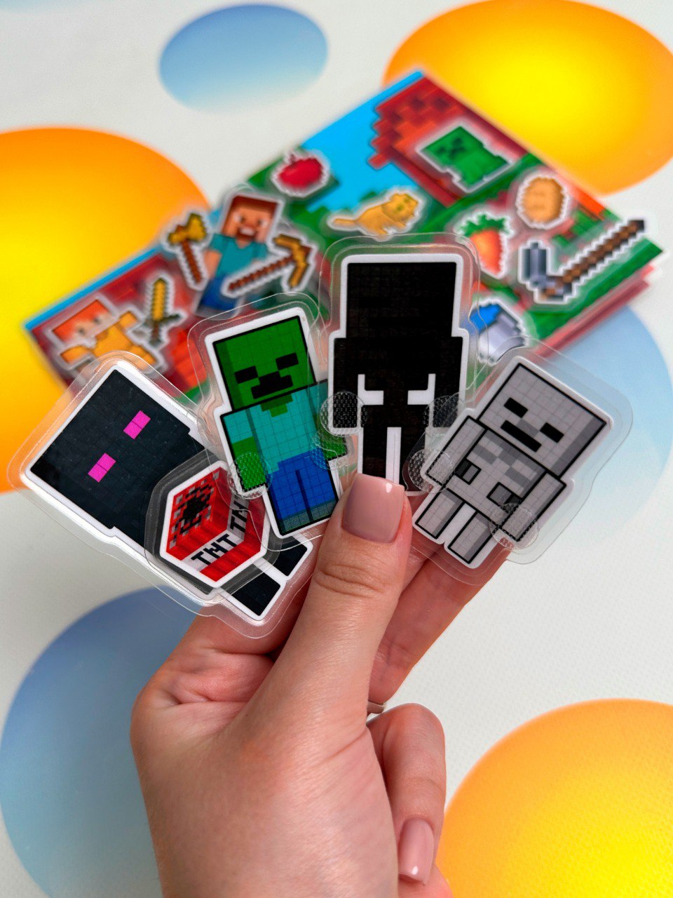 Este libro interactivo tamaño A6 inspirado en Minecraft está pensado para que los niños jueguen, construyan escenas y creen sus propias historias de forma divertida y educativa, sin necesidad de pantallas. Incluye figuritas removibles con velcro adhesivo, que se pueden pegar y despegar fácilmente para formar distintos escenarios y personajes.
