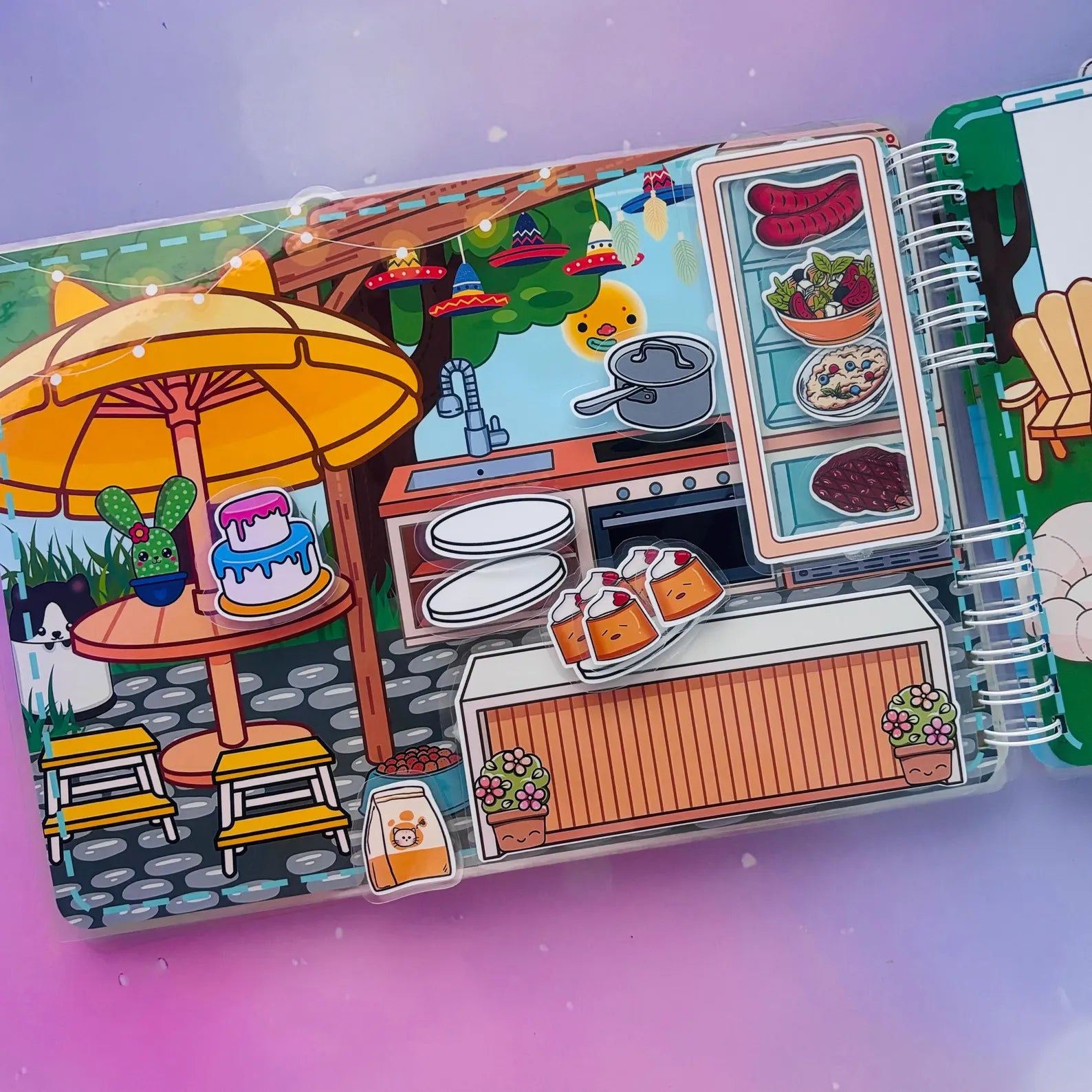 El Libro Interactivo Summer in Toca Boca es un material didáctico diseñado para que los niños jueguen, creen historias y desarrollen su imaginación sin necesidad de pantallas. Incluye figuritas con velcro adhesivo reutilizable que pueden colocarse y retirarse fácilmente, permitiendo crear múltiples escenas veraniegas inspiradas en el mundo Toca Boca.